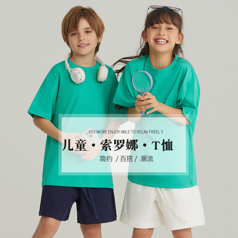 子供の涼感の通気性のソロナのtシャツの幼稚園の服のクラスの服は子供服の活動の半袖を注文して印刷図を注文します。