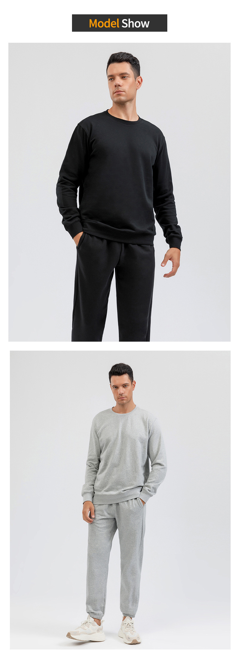 団体スポーツスーツの男性春秋クロスボーダーの足の衛ズボンの純綿のゆるい欧米の丸首の衛衣の男性は注文して注文します。