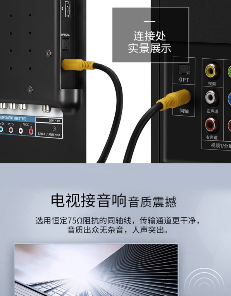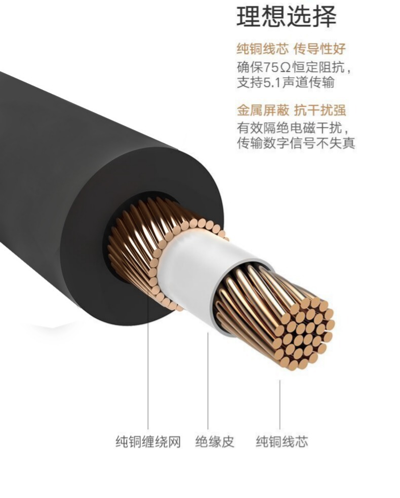 金山角 高画質有線テレビ信号ケーブル 9.5TVインチネジF型コネクタセットトップボックスからテレビへの接続 TV壁コンセント