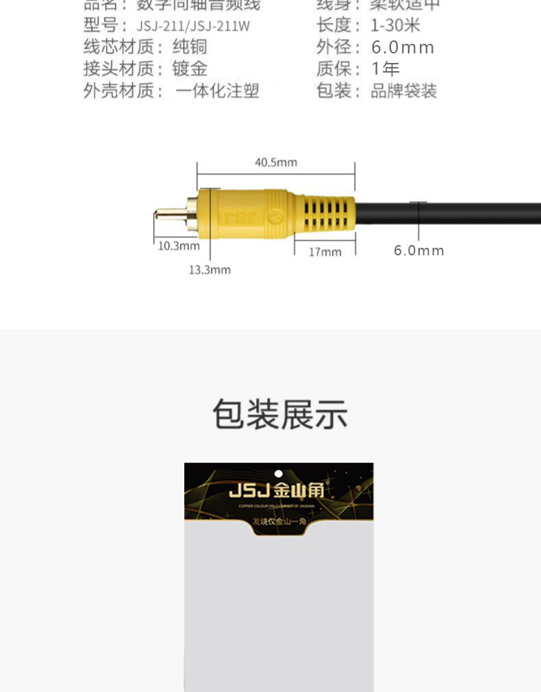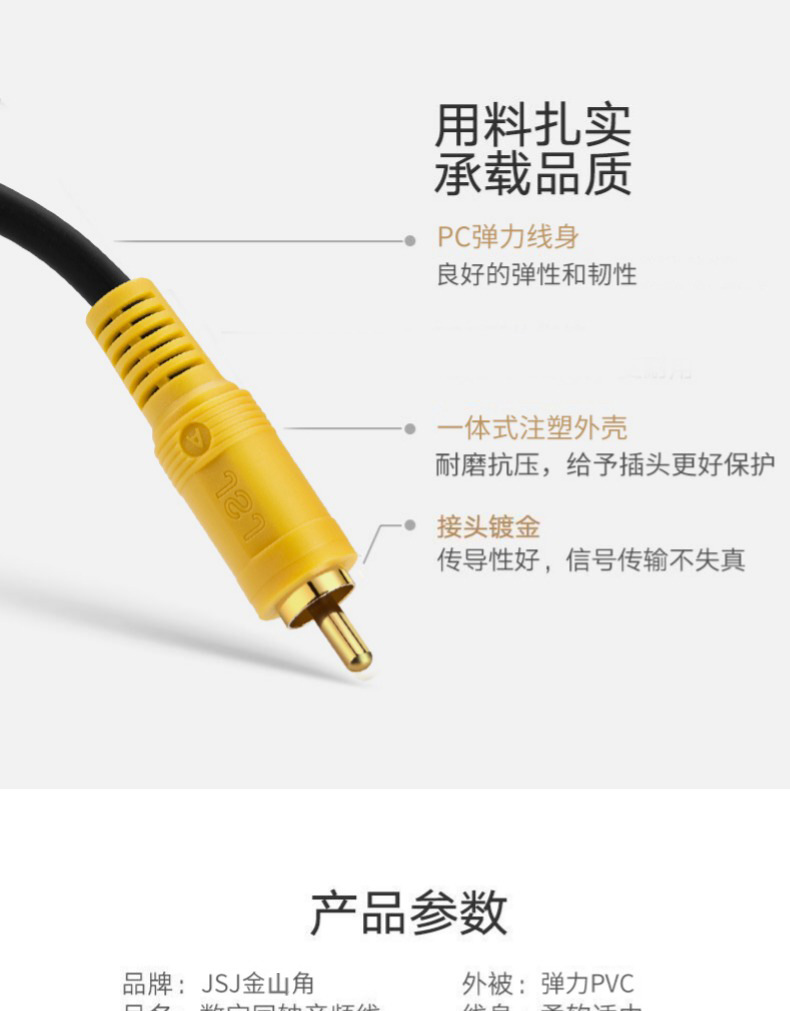 JSJ金山角蓮花同軸線RCA公対雄エルボ映像線テレビ音響同軸AV音声映像線