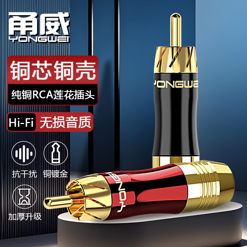 甬威 全铜镀金莲花插头RCA公AV音视频线同轴线焊接头音响RL声道头