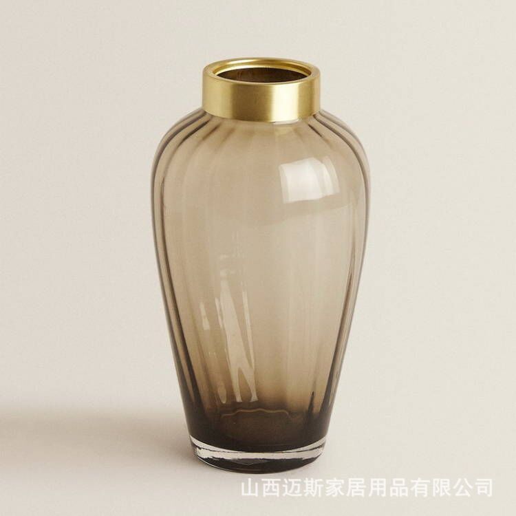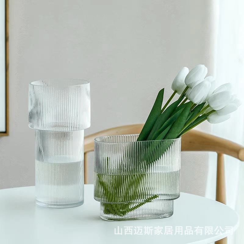 シンプルで清新なu型メッキ透明ガラス花瓶創意縦縞ins水養新鮮リビングテーブル置物