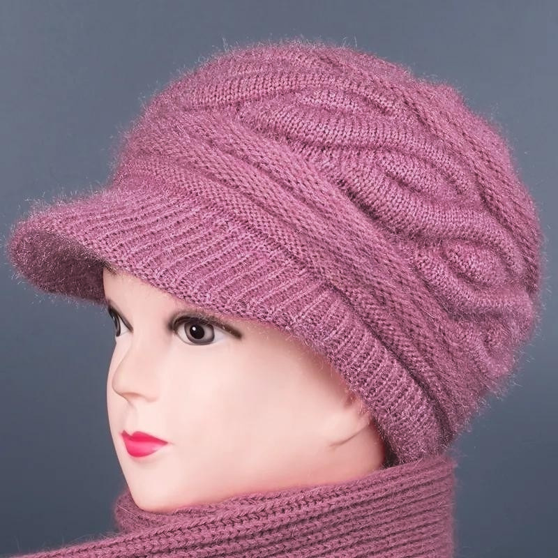 中高年ニット帽子マフラー女性セット秋冬お母さん毛糸帽子保温おばあちゃん綿帽子卸売り品