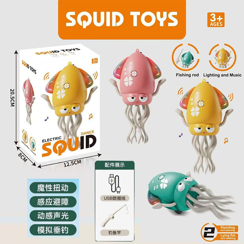 跨境爆品魔性电动跳舞章鱼灯光自动感应避障跳舞八爪鱼解压玩具