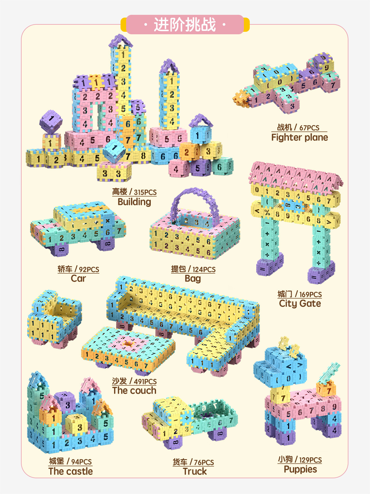 数字は早くプラスチックの積み木を教えます。子供の積み木のおもちゃです。