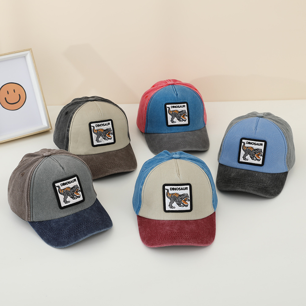 恐竜の子供の水洗いの野球帽の男女の子供の漫画のアヒルの舌の帽子の春秋の新型の日よけの帽子は色を合わせます子供の帽子