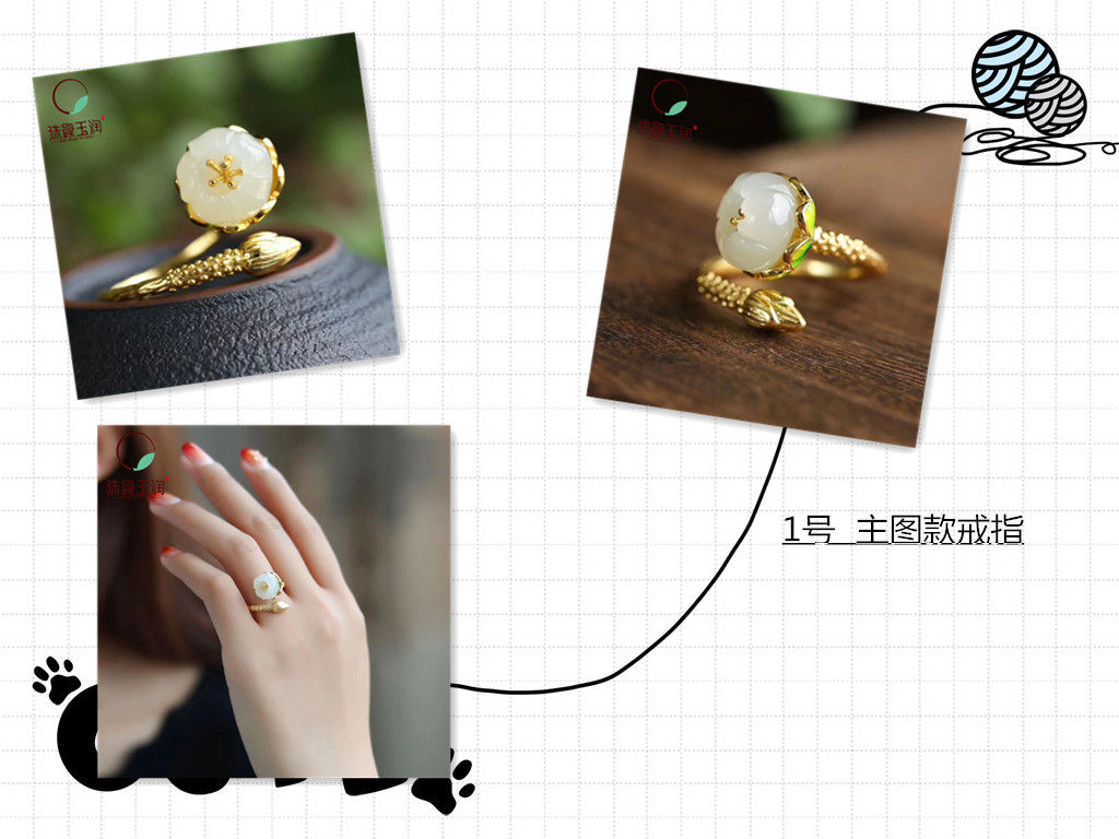 新作紫禁城風ファッション白玉飾り高級白玉花蕾蓮の実活口金指輪飾り指輪