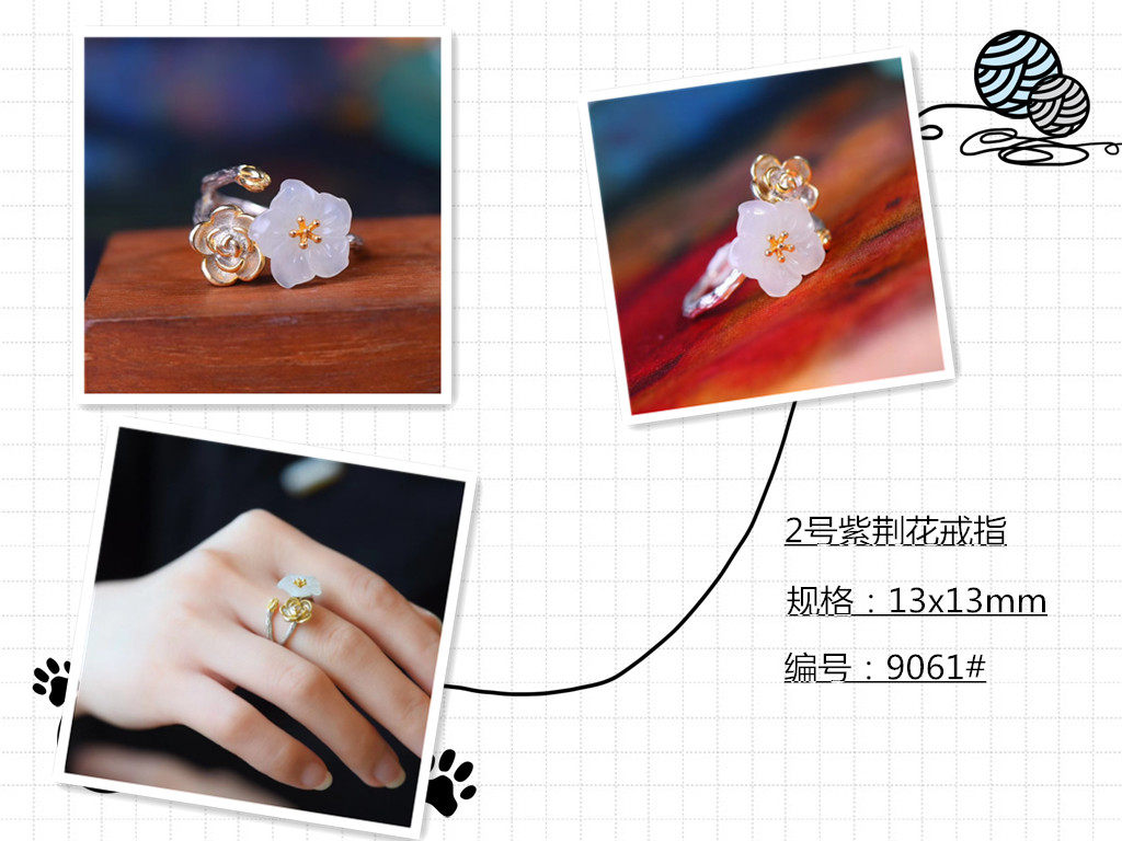 智贝主图_4新款纯银烤蓝镶嵌时尚和田玉银饰精品白玉花苞