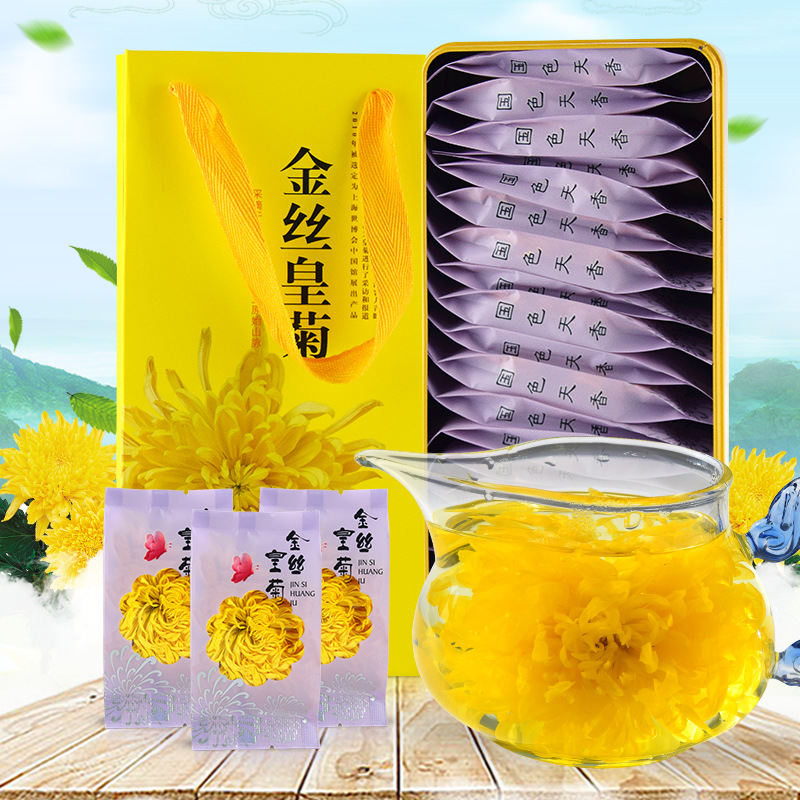 金絲皇菊(金絲皇菊)単花箱入り特大菊花茶ティーバッグ入り完成品黄菊卸売冷蔵茶葉フルーツティー