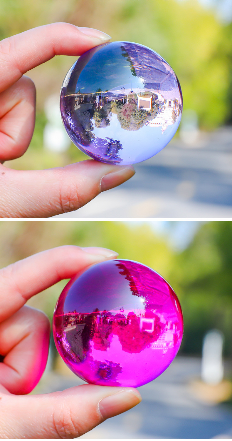 メーカーカラークリスタルボール、ナチュラルカラーボール、撮影用小道具、赤、青、紫のボール、カウンター装飾ボール、ガラスボール