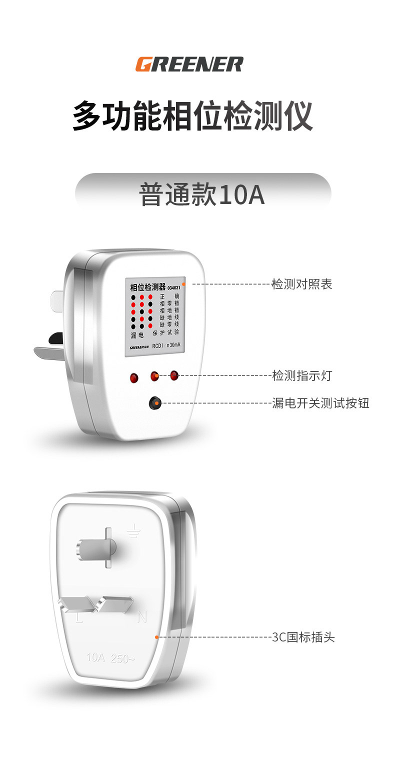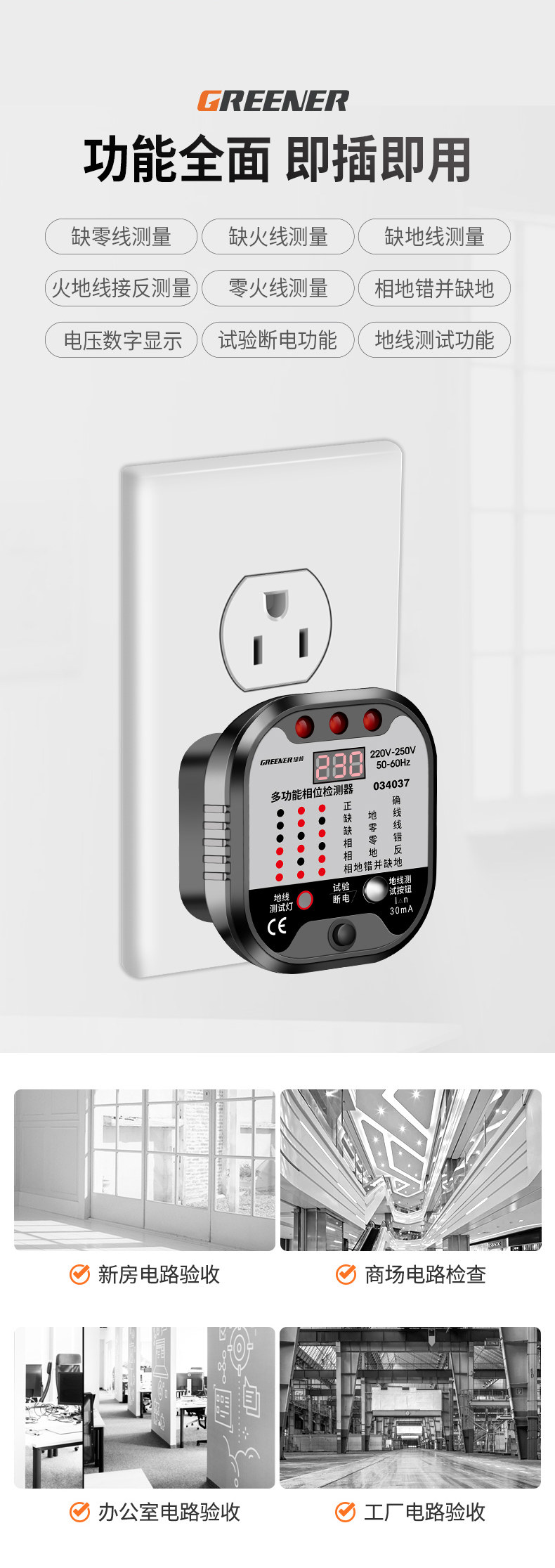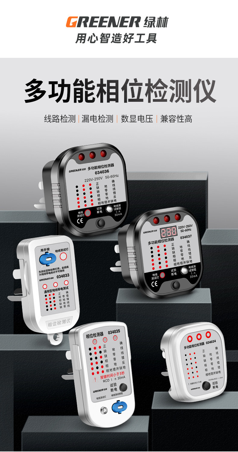 緑林位相検出器多機能プラグ電源検出器ソケットテスト極性検電器漏電地線