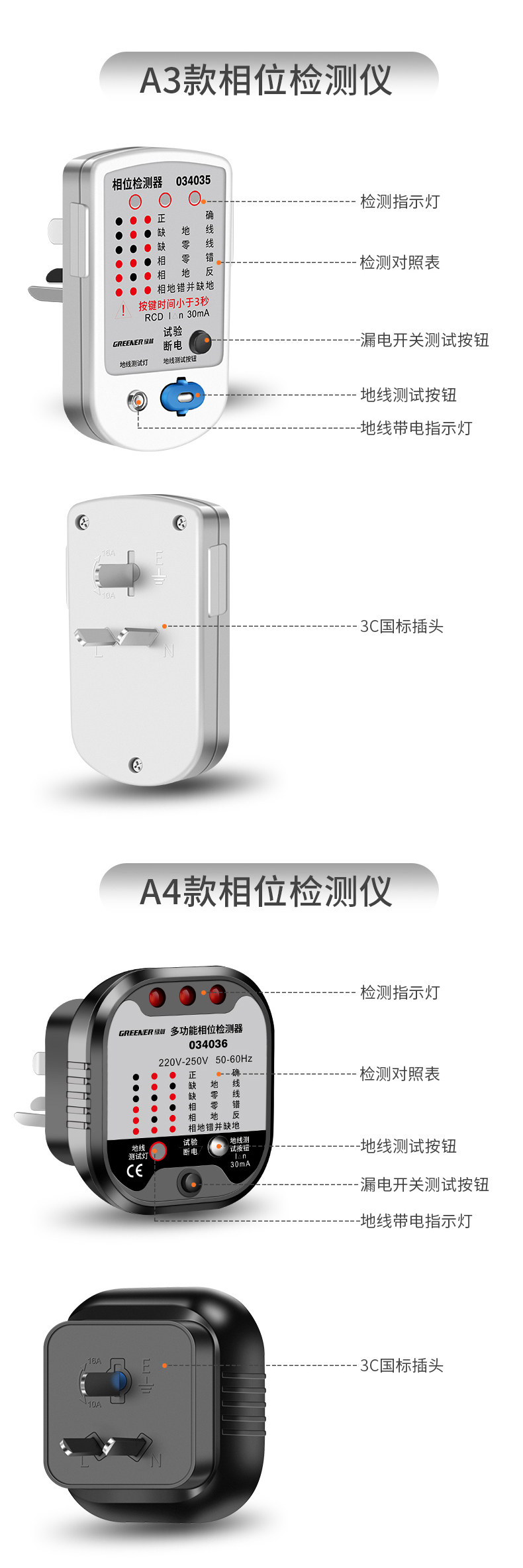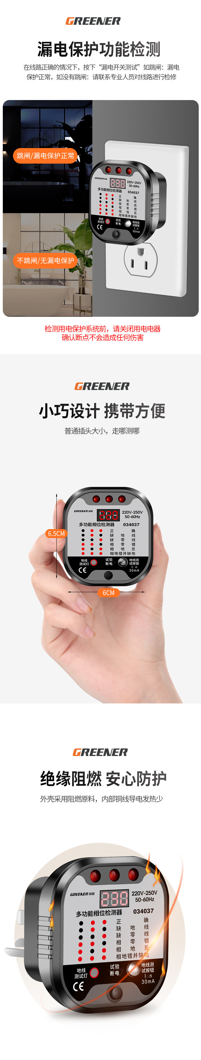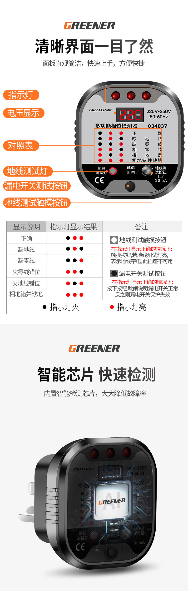 緑林位相検出器多機能プラグ電源検出器ソケットテスト極性検電器漏電地線