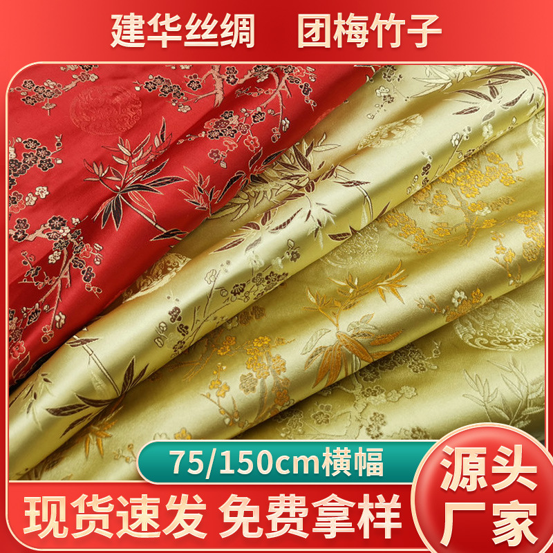ポリエステル織錦サテン三五団梅竹模様カスタム生地レトロ包装チャイナドレス子供服生地メーカー