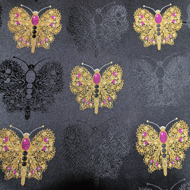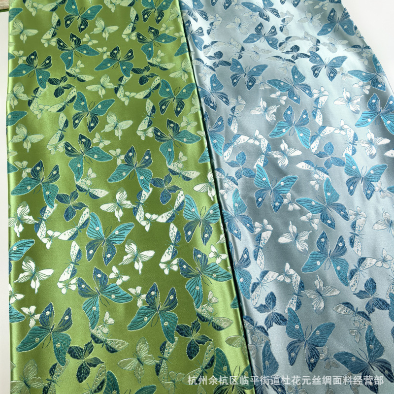 蝶が舞うブロケードジャカード生地シルキーで光沢のある中国のコート衣類生地