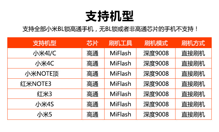 支持小米BL锁高通手机,无BL锁或者非高通芯片的手机不支持!