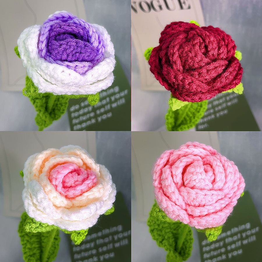 手編みニットの毛糸の花は永遠の花の子供の日のプレゼントの露店の針の糸の線の花の完成品の卸売りをシミュレーションします。