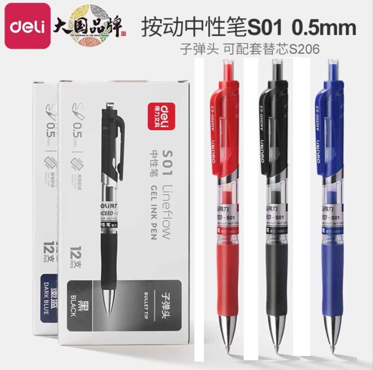 デリ s08 プレスゲルペン学生弾丸ブラシペン黒水ペンオフィス署名ペン文具用品