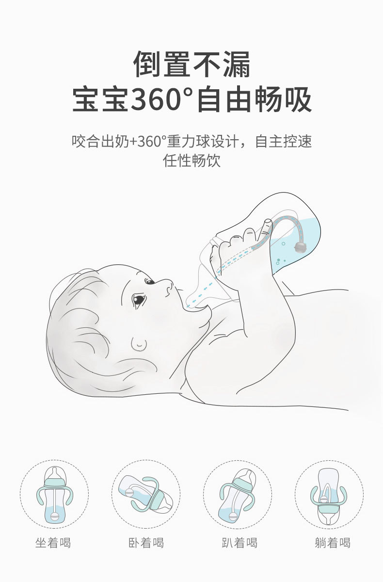 愛多奇新生児哺乳瓶大赤ちゃん広口径pp膨張防止ストロー哺乳瓶1本両用