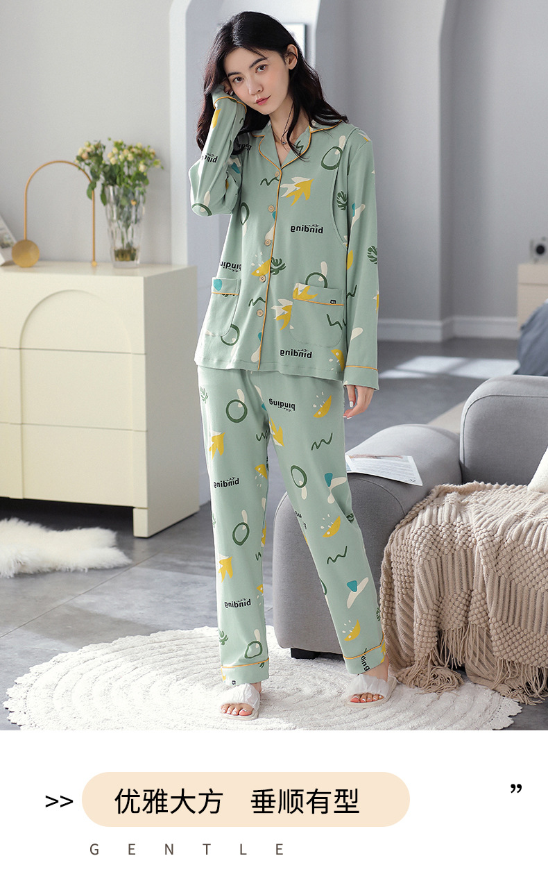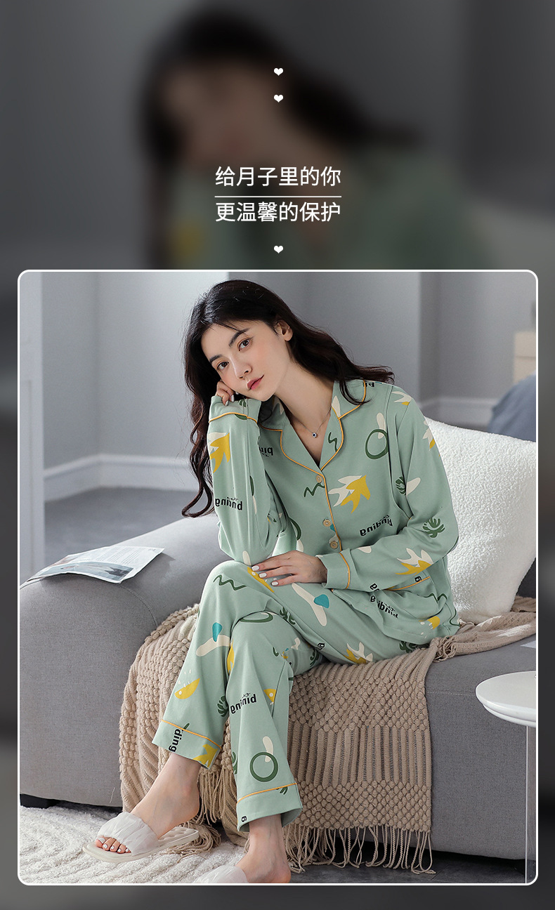 春秋レディース純綿パジャマ月子服ホームウェアカーディガン長袖長ズボン妊婦授乳授乳セット