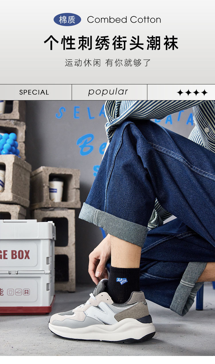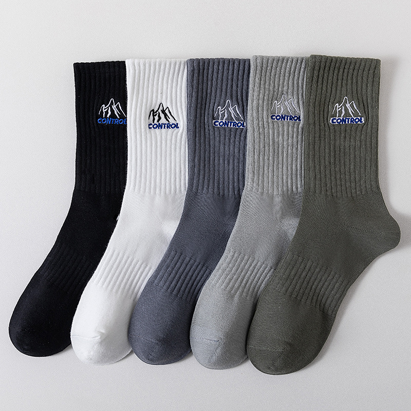秋冬新作靴下メンズ中筒ストッキング春秋物メンズ防臭吸汗メンズ靴下刺繍スポーツメンズロング筒