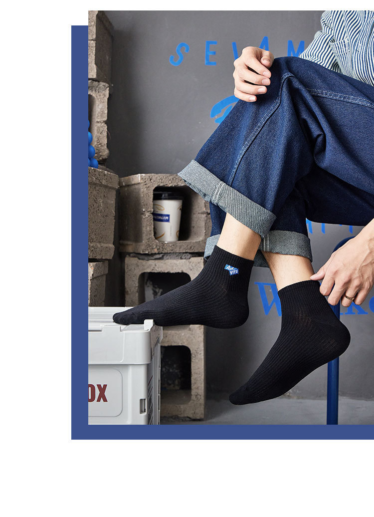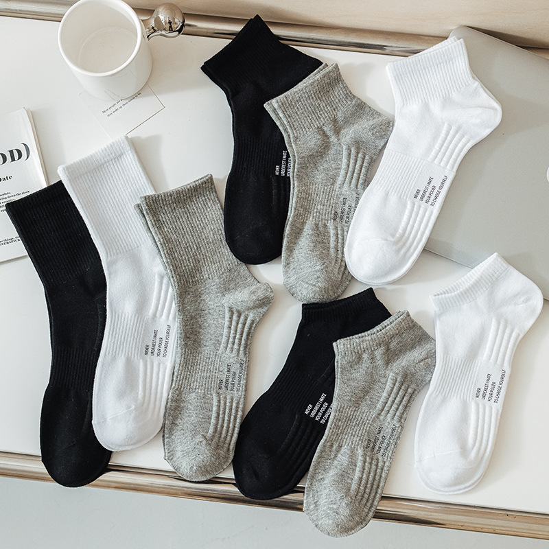 黒白靴下男春夏綿靴下タオル底中筒靴下防臭吸汗運動金夏男性長筒