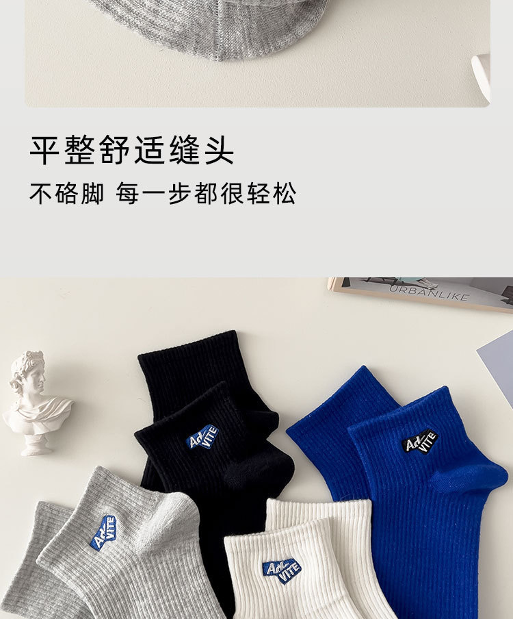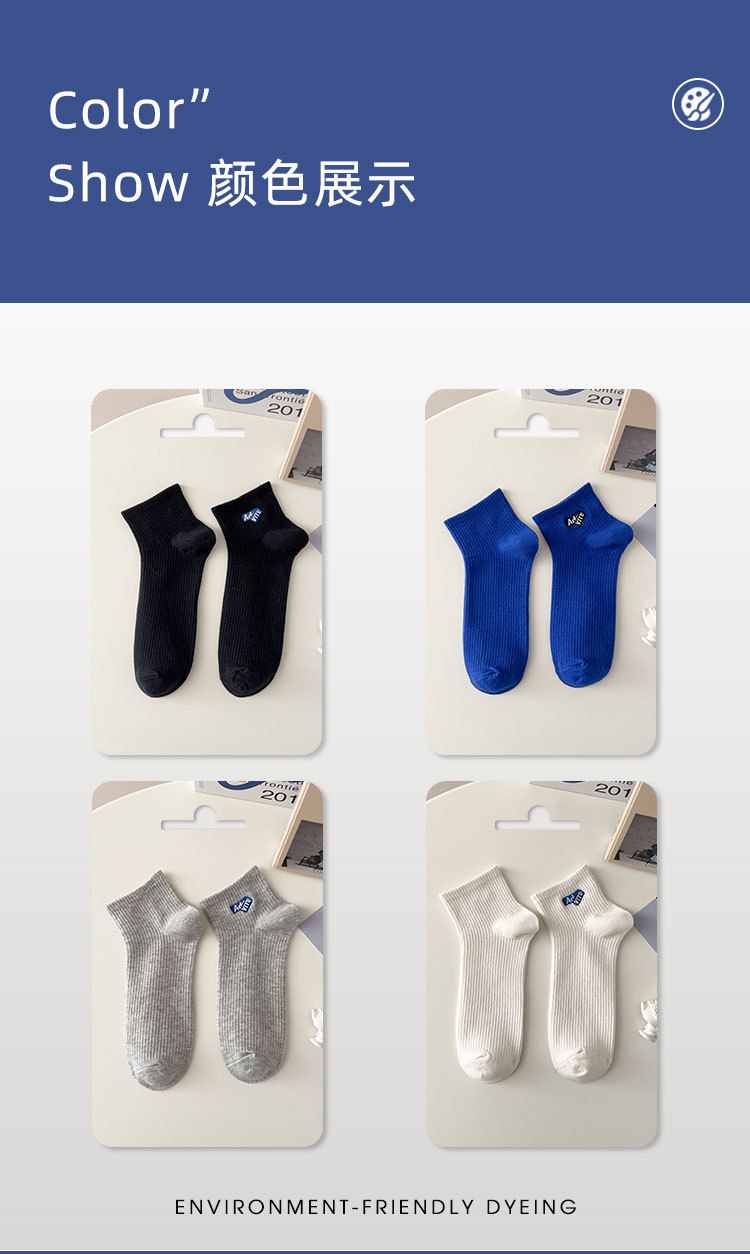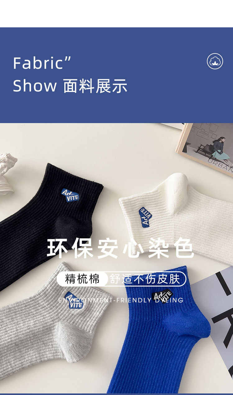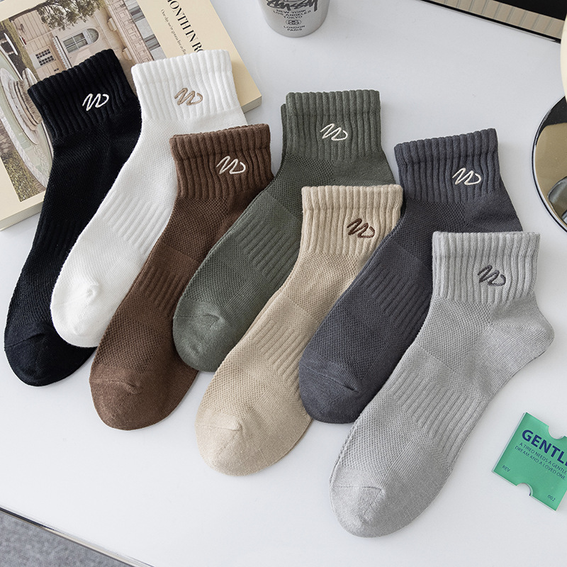 諸及び靴下男性用ソックス春夏の薄いw字刺繍吸汗防臭靴下男性用中筒運動綿靴下