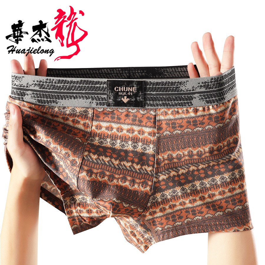 華傑龍の新型プリント綿質男性下着男性平角ズボン通気性男性ファッションパンツ