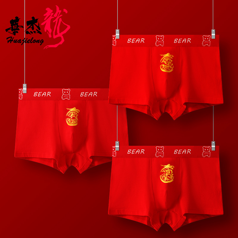 華傑龍の男性の平角の大きい赤い男性の下着の赤い平角のズボンの通気性の大きいサイズの本命の年の通気性の代行