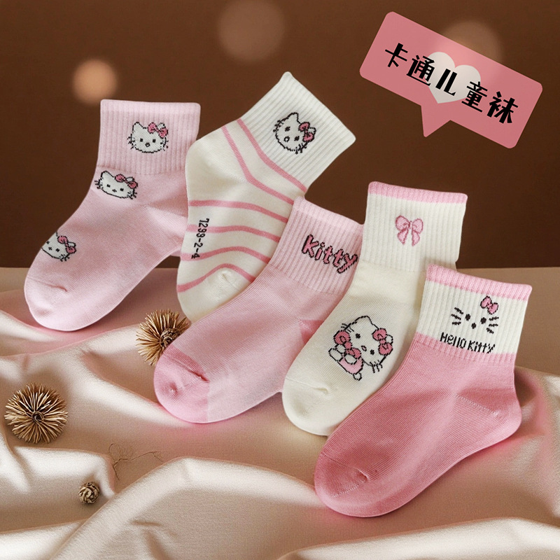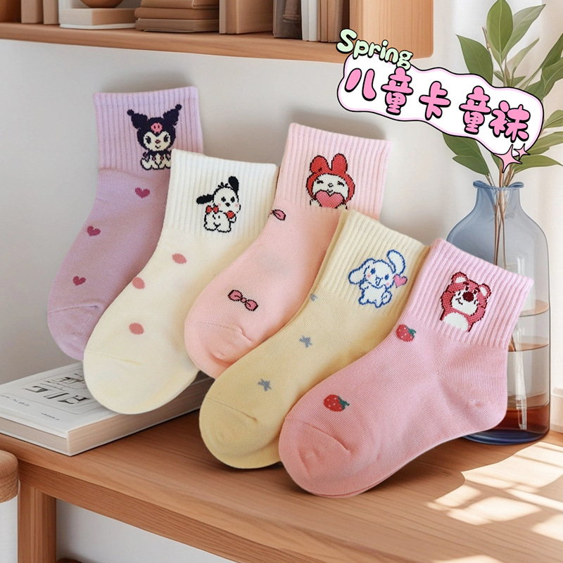 卸売 2025 愛カチカチ秋と冬の子供の靴下漫画かわいいピンク女子学生ベビーミッドチューブソックス