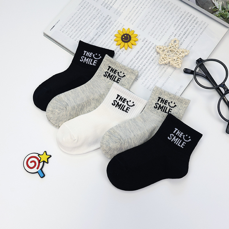 卸売愛カチカチ子供靴下男の子と女の子黒と白のコーマ綿秋と冬の学生ベビースポーツミッドチューブ