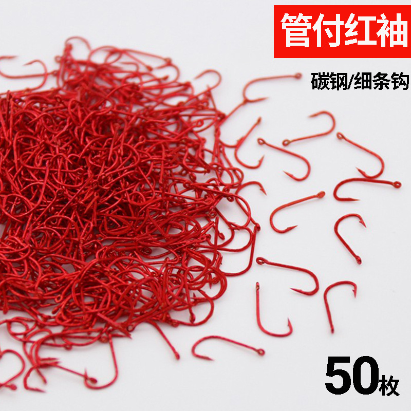 赤い袖の釣り針の管はばら売りの袖のフックの野釣りの小さいフナの長い柄の細い条のフックの亜の白い条の馬の口の赤袖の金の袖を掛けます。