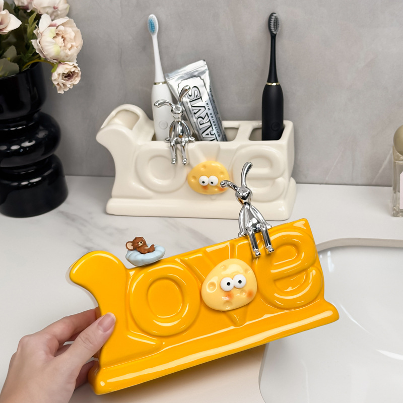 セラミック電動歯ブラシ棚トイレ洗面台軽贅沢家庭用浴室歯ブラシ棚歯磨き粉収納棚