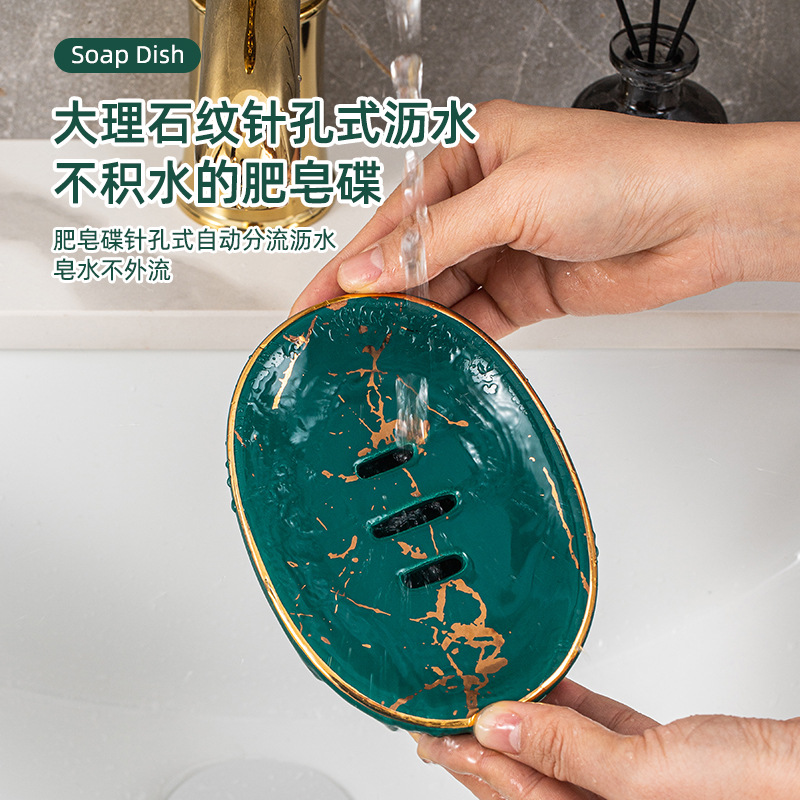 轻奢陶瓷肥皂盒浴室沥水免打孔家用高档卫生间洗手台香皂盒置物架