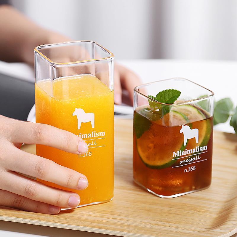 メーカー卸売り角型高ホウ素シリコンガラス透明牛乳カップヨーロッパ式コーヒーカップ飲料ジュースミルクカップ