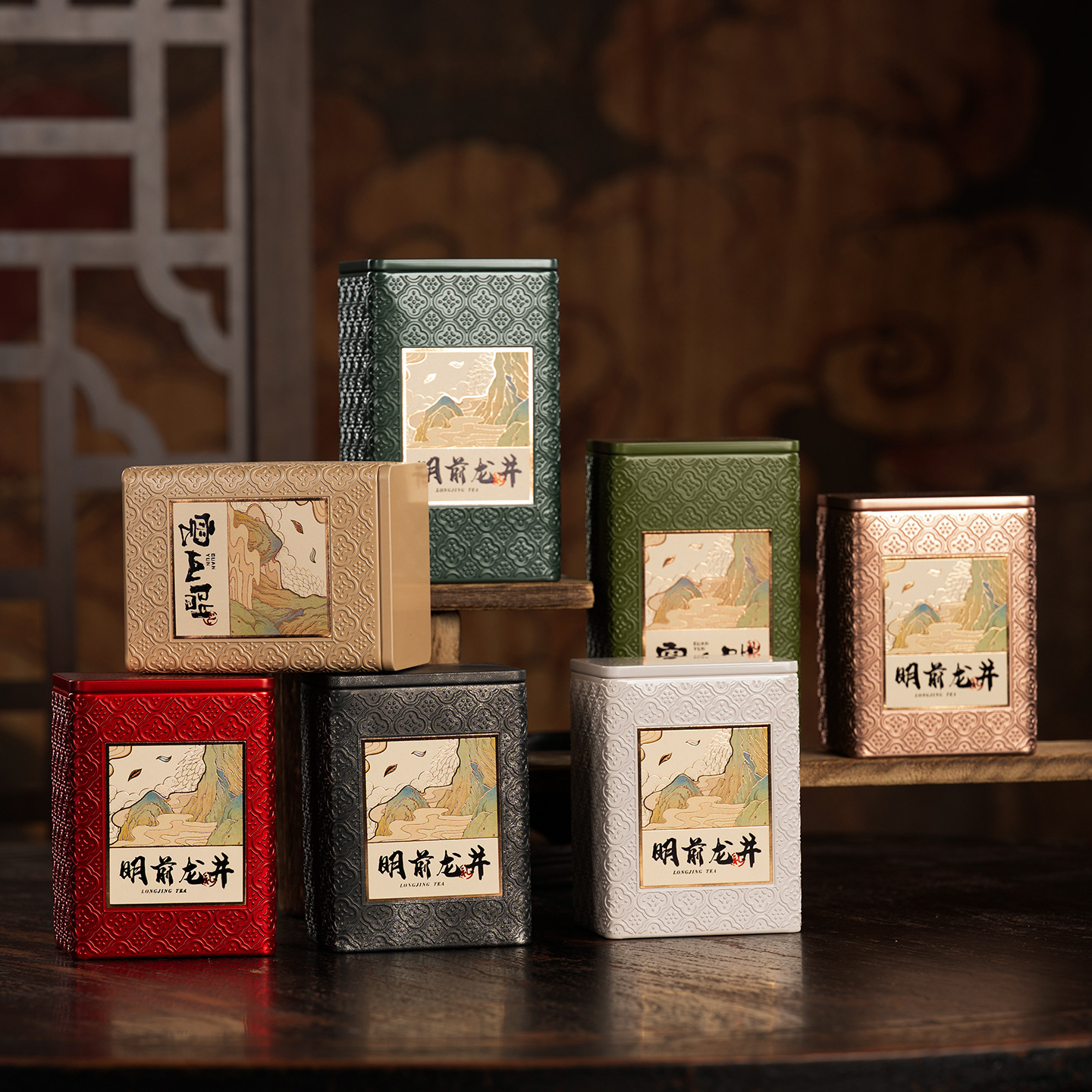 高档明前龙井碧螺春茶叶罐铁罐方形信阳毛尖六安瓜片包装盒密封罐