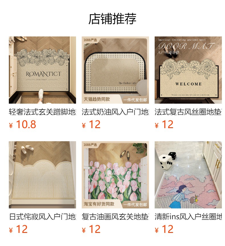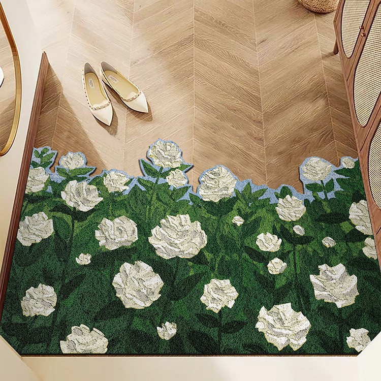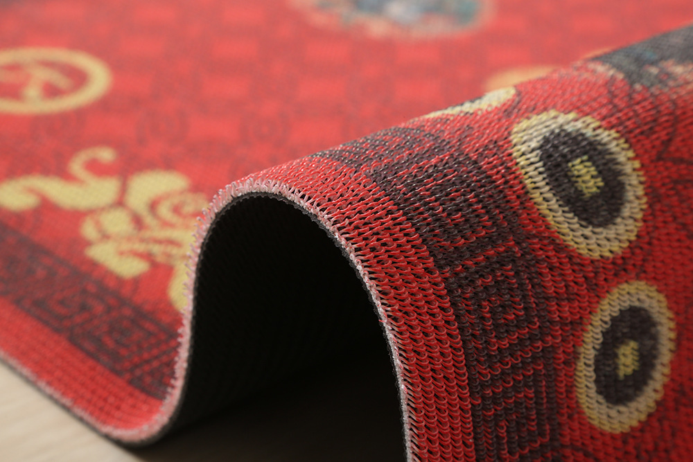 红色花卉入户门丝圈地垫耐脏进门家用门口刮泥蹭土防滑脚垫可裁剪