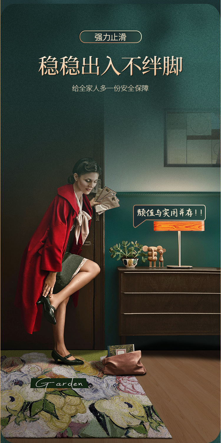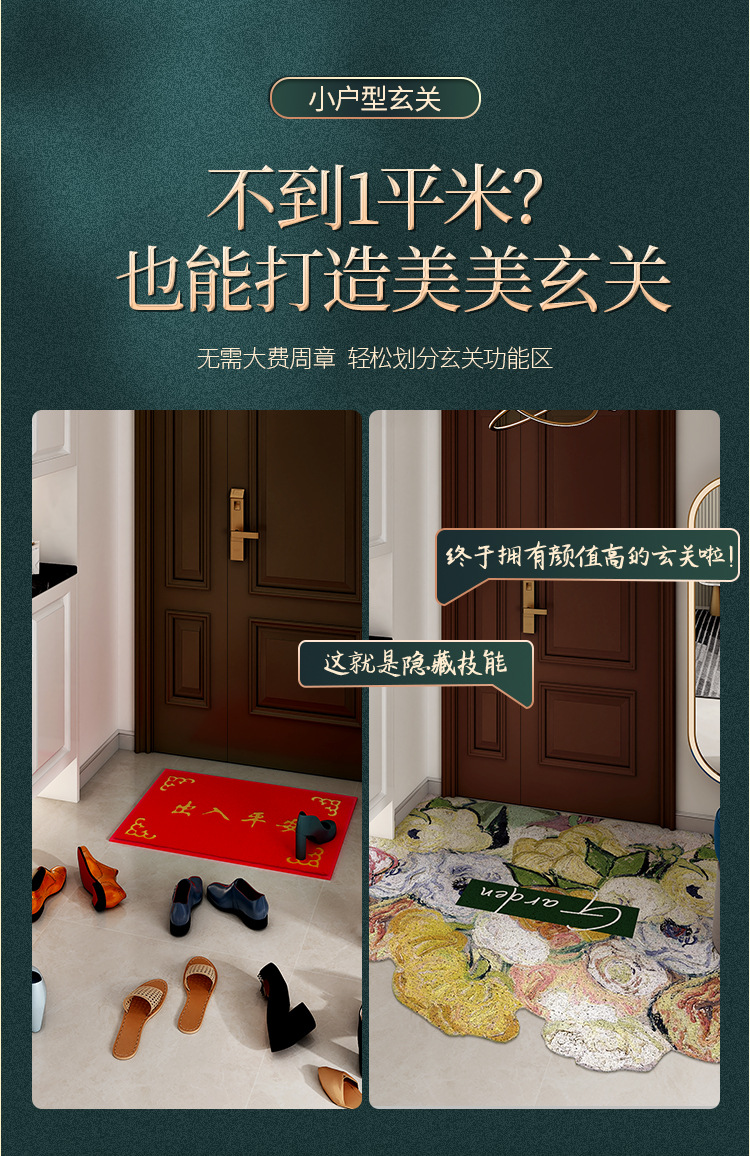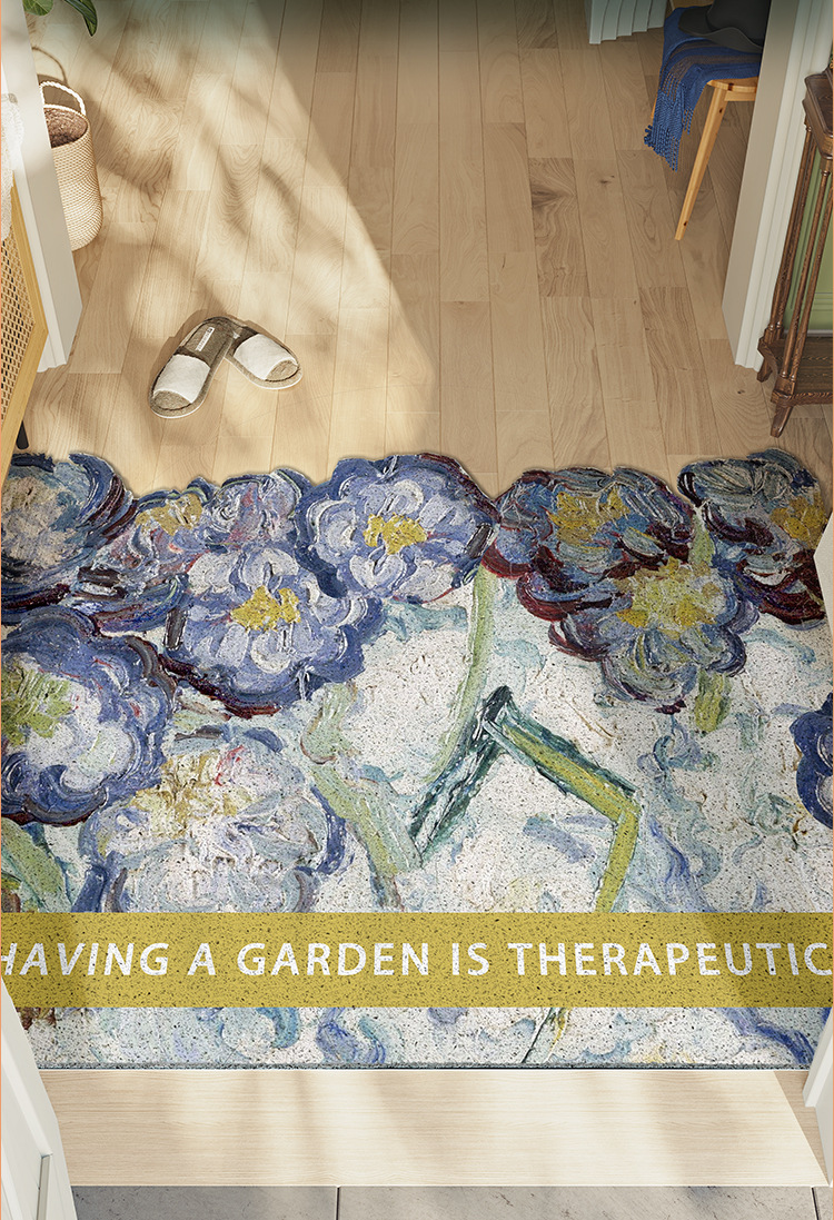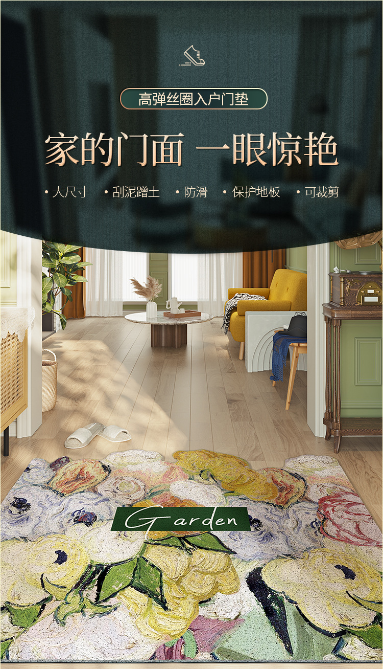 油画风入户门地垫玄关丝圈材质门垫轻奢高级感家用换鞋脚垫防滑垫