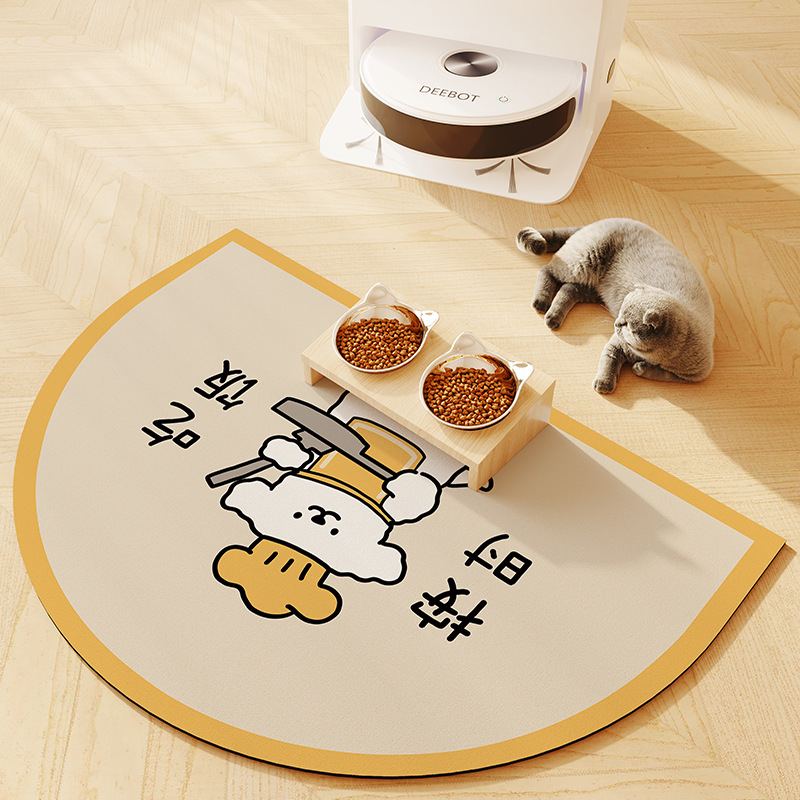 漫画ペットの食事マット猫の吸水滑り止め速乾食マット子犬の食事マット猫の碗の汚れに強い耐摩耗マット