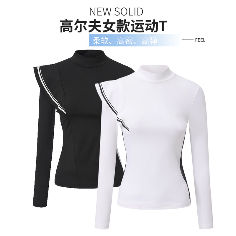 24春秋ゴルフスポーツレディースジャージ高弾性コントラストカラー速乾スリムフィット長袖保温Tシャツ高弾性速乾