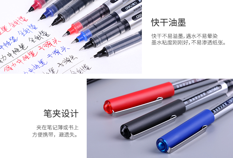 有力直液式中性ペン0.5黒速乾学生用炭素筆サインペン赤筆試験卸売り