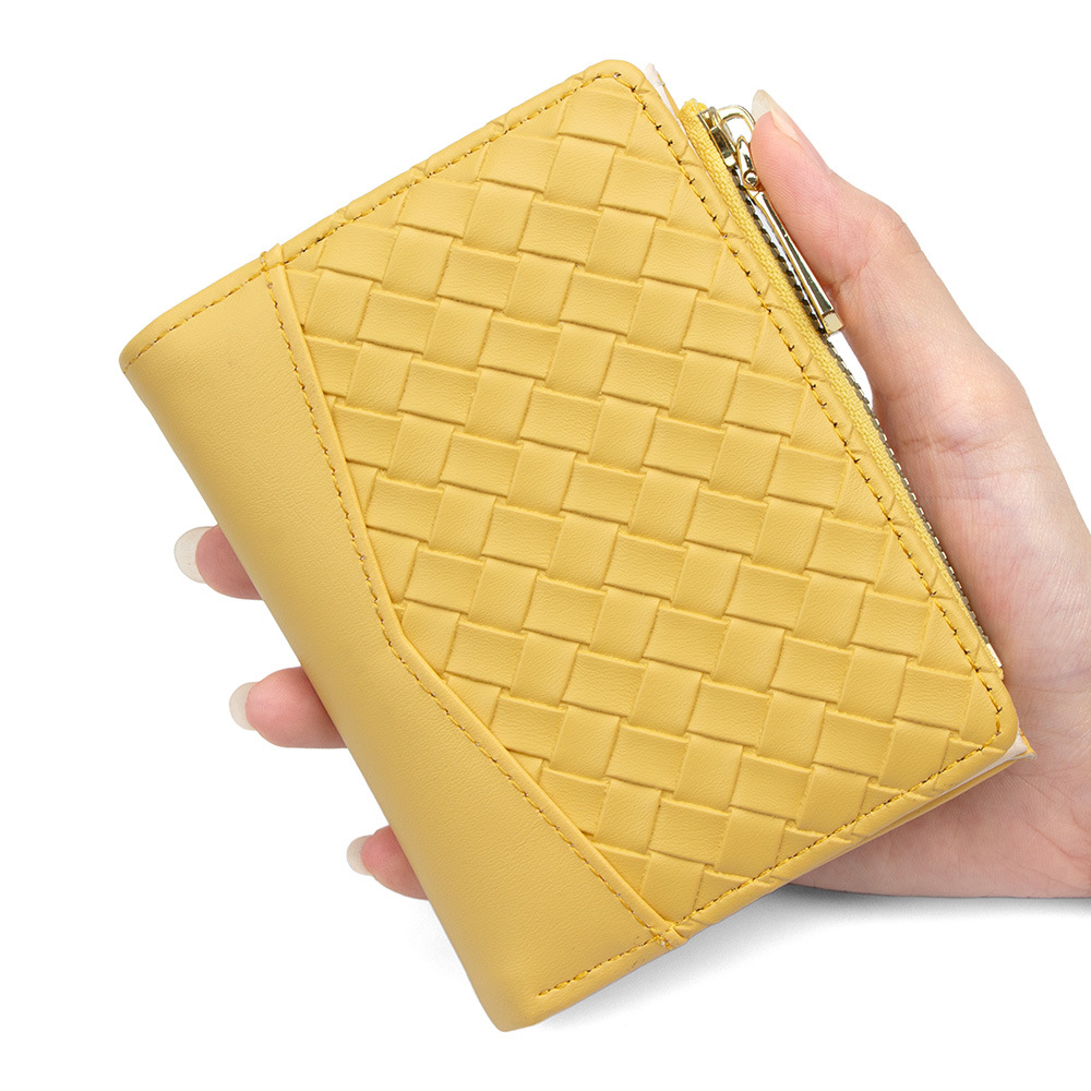 跨境新款欧美时尚女士钱包编织纹拉链硬币包多卡位卡包零钱包批发