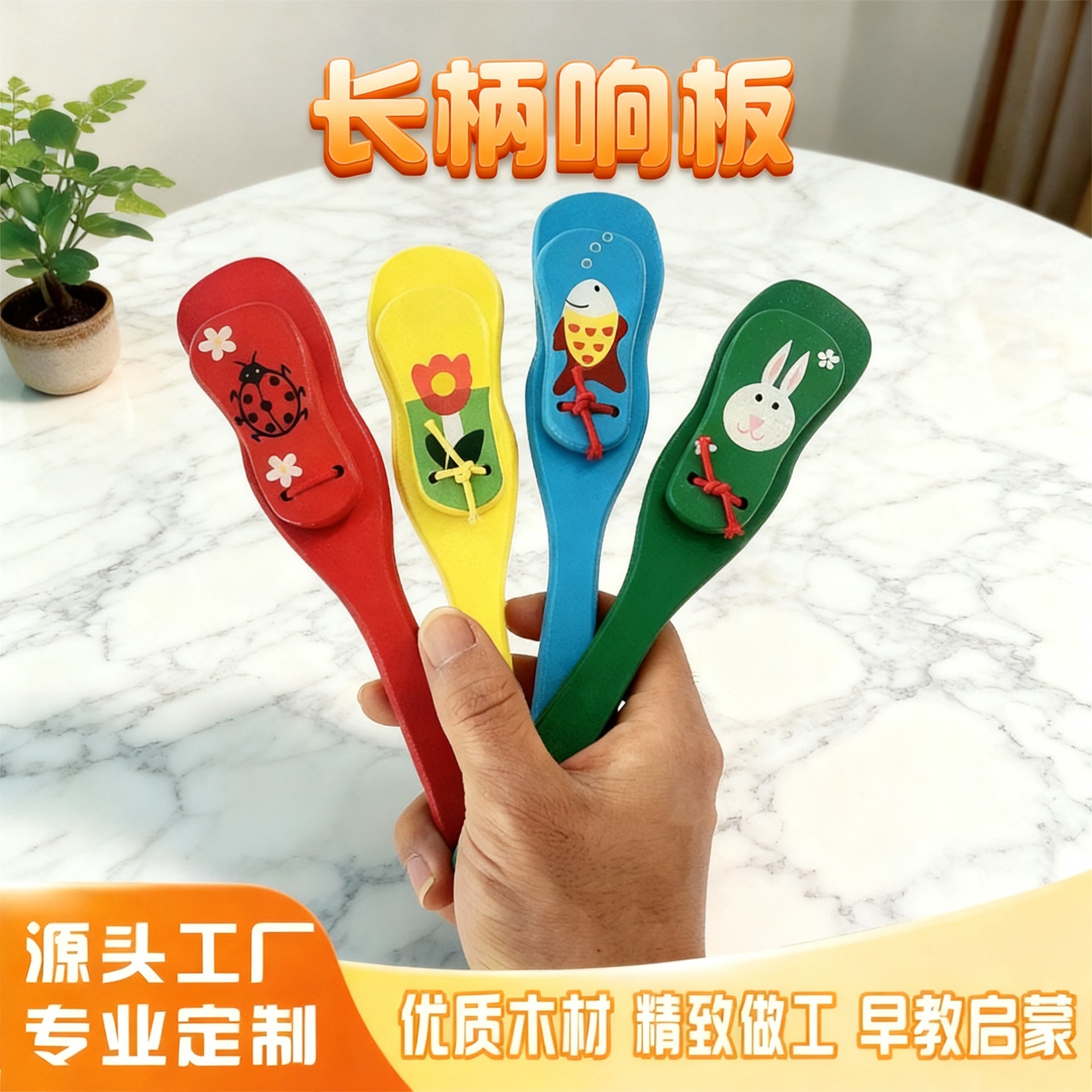 奥尔夫打击乐器 长柄手拍板 原木手柄响板 鸭舌板木质西班牙响板