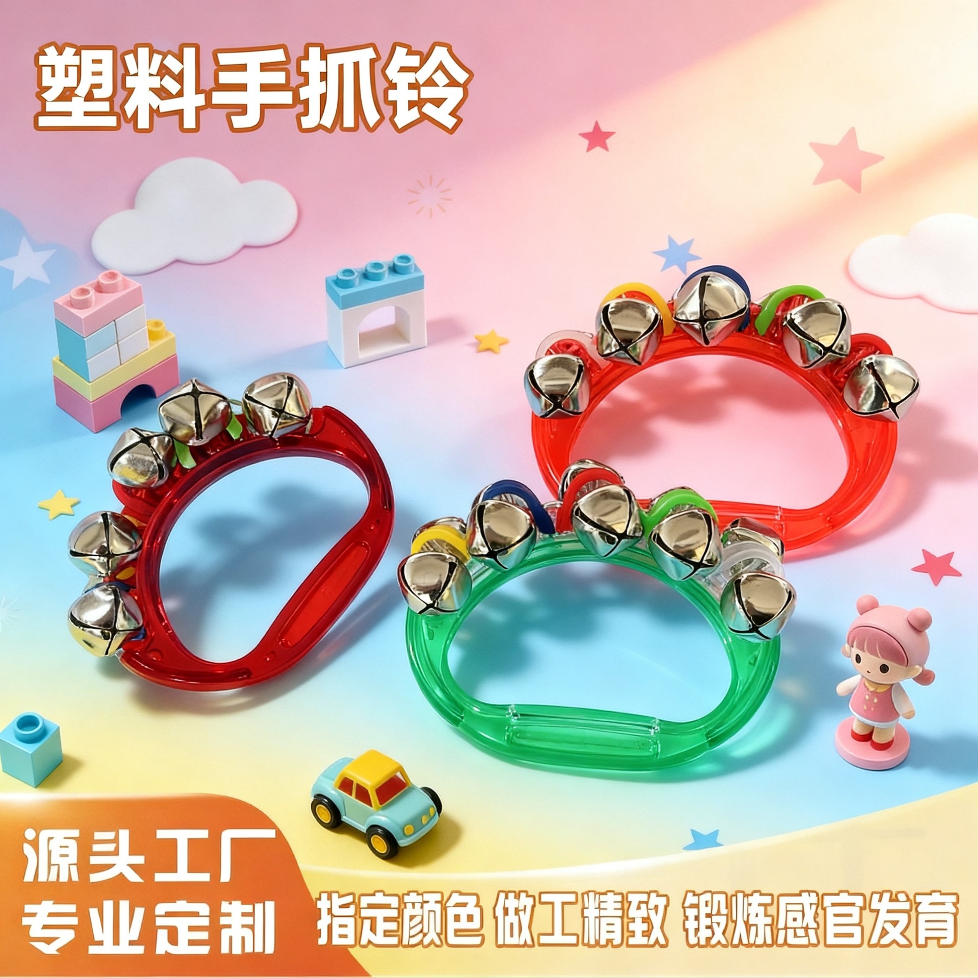 塑料玩具手抓铃 幼儿园早教伴奏乐器 哄娃透明摇铃奥尔夫乐器