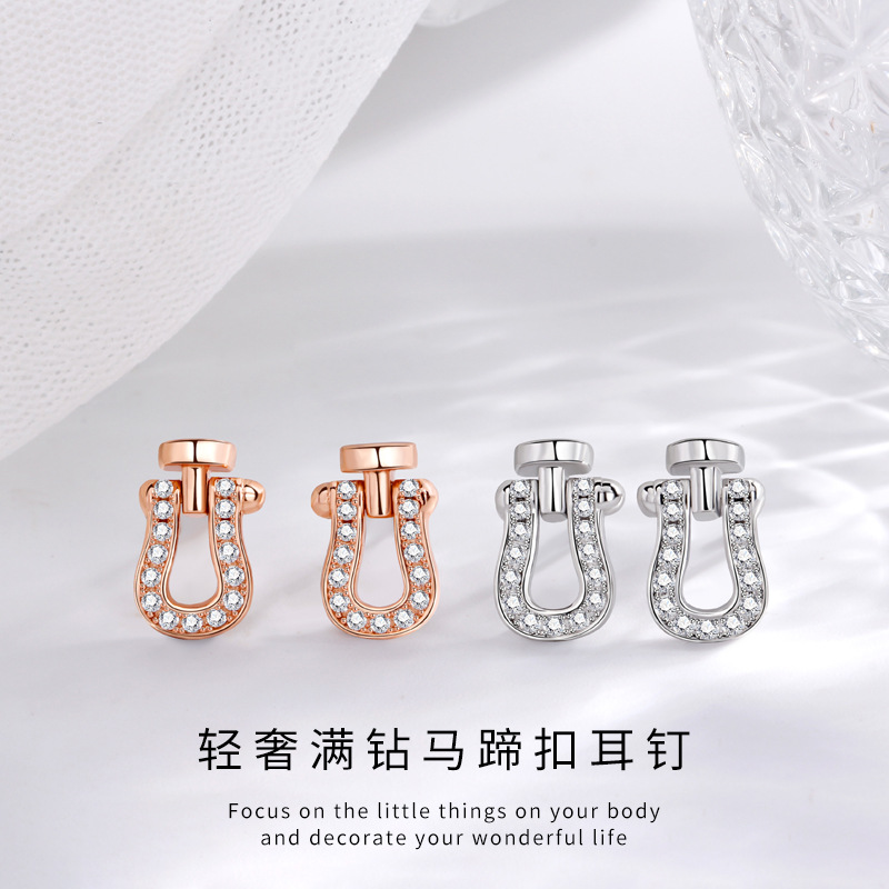 S925 スターリングシルバーのフルダイヤモンド馬蹄バックルイヤリング、女性用、多用途、ファッショナブル、軽い高級感、エレガントでハイエンド、女性用クロスボーダーホットセールイヤリング
