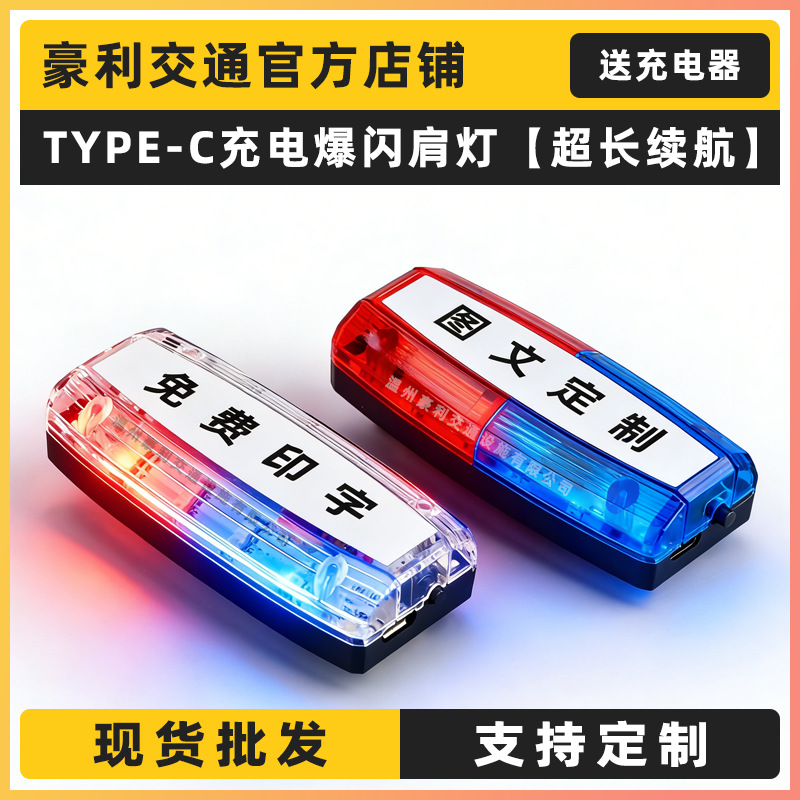 充電肩ランプLED赤青フラッシュ保安環衛不動産パトロール警告灯肩クリップフラッシュtype-c