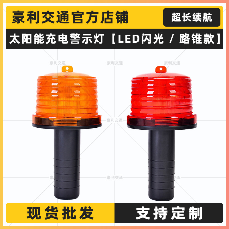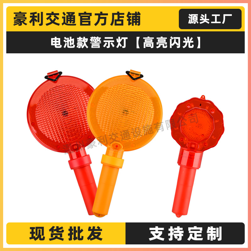 円形大餅灯は赤い梅灯交通工事路錐LEDハイライト警告灯電池金を持っている