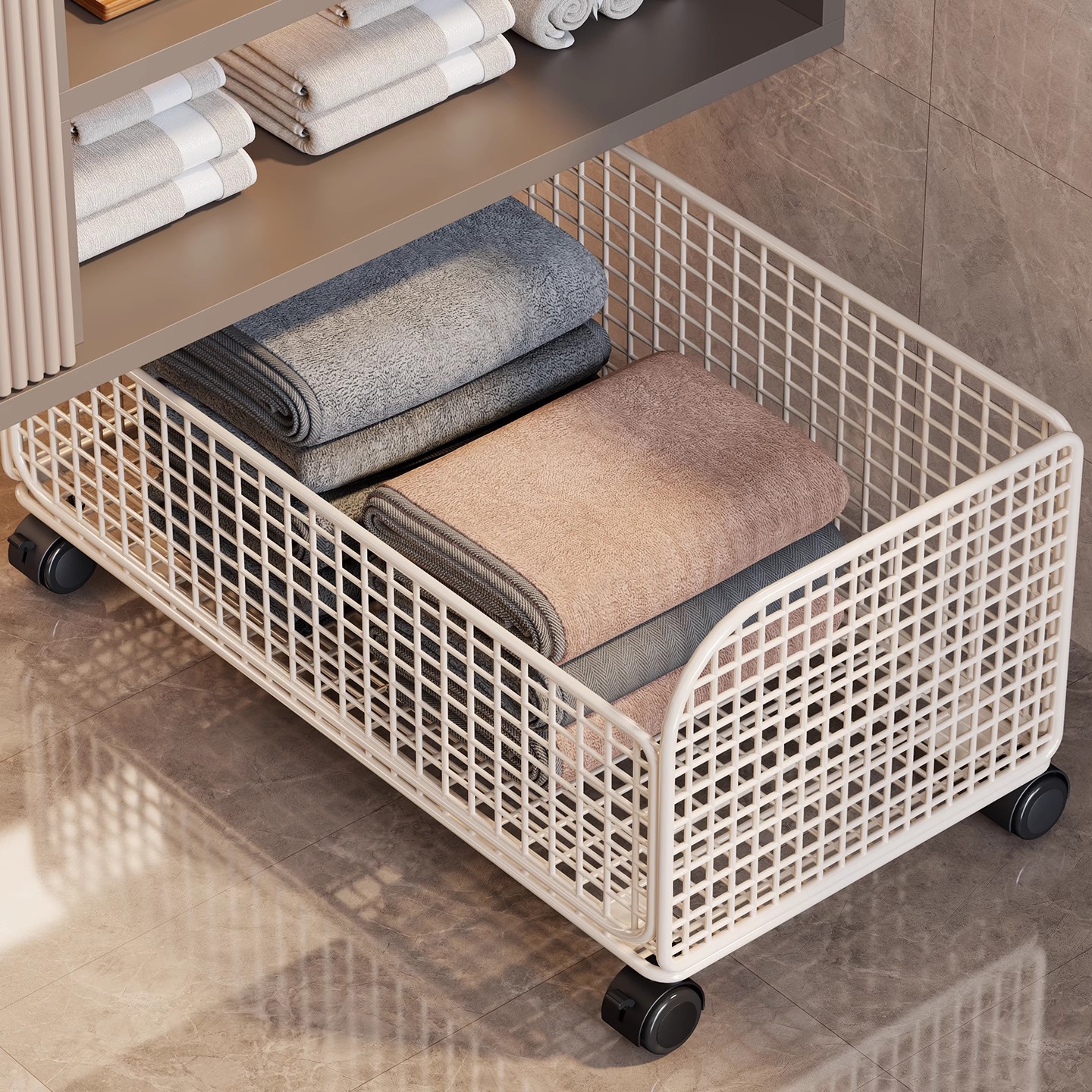 浴室柜下脏衣篓脏衣服收纳筐家用大容量带轮可移动浴室推车洗衣篮