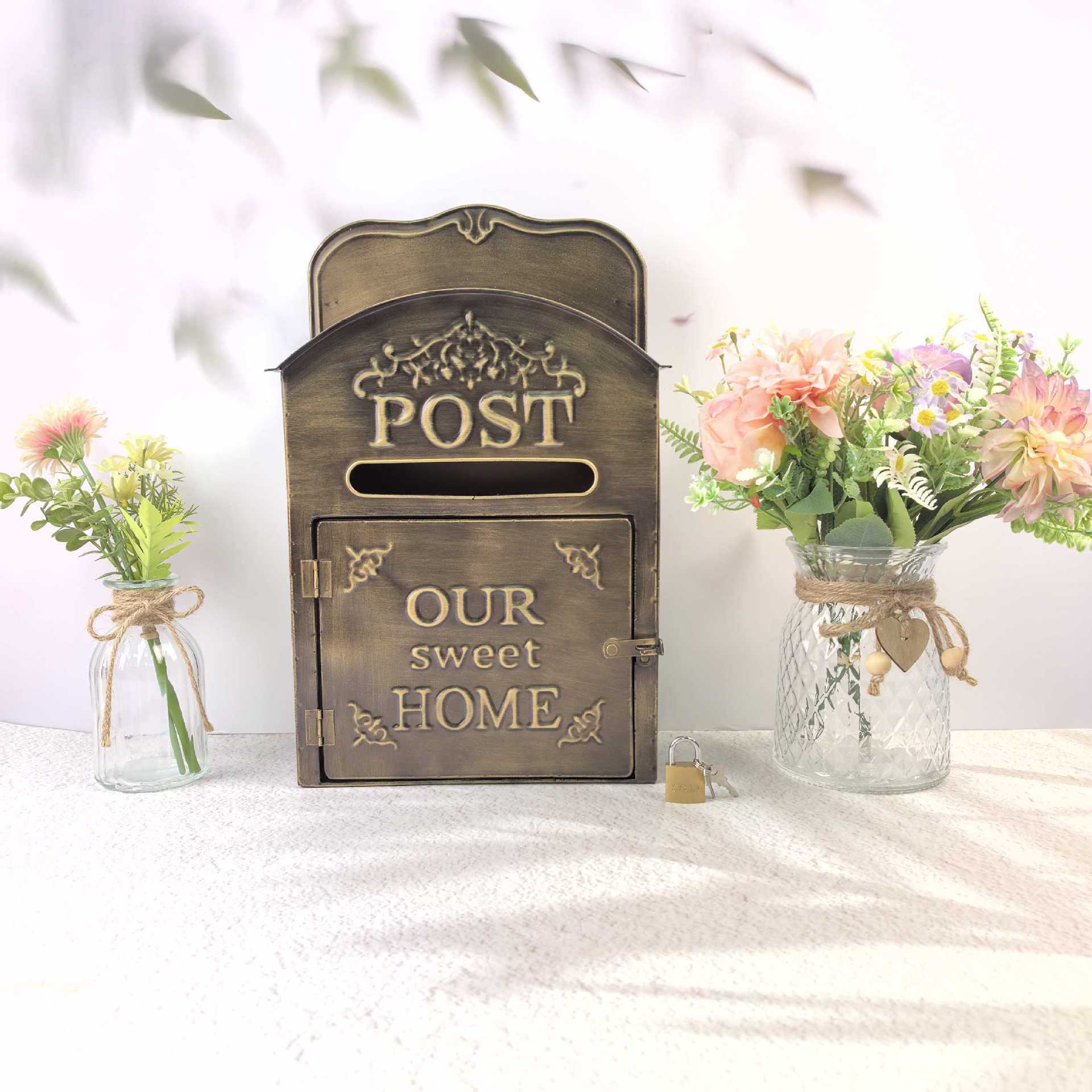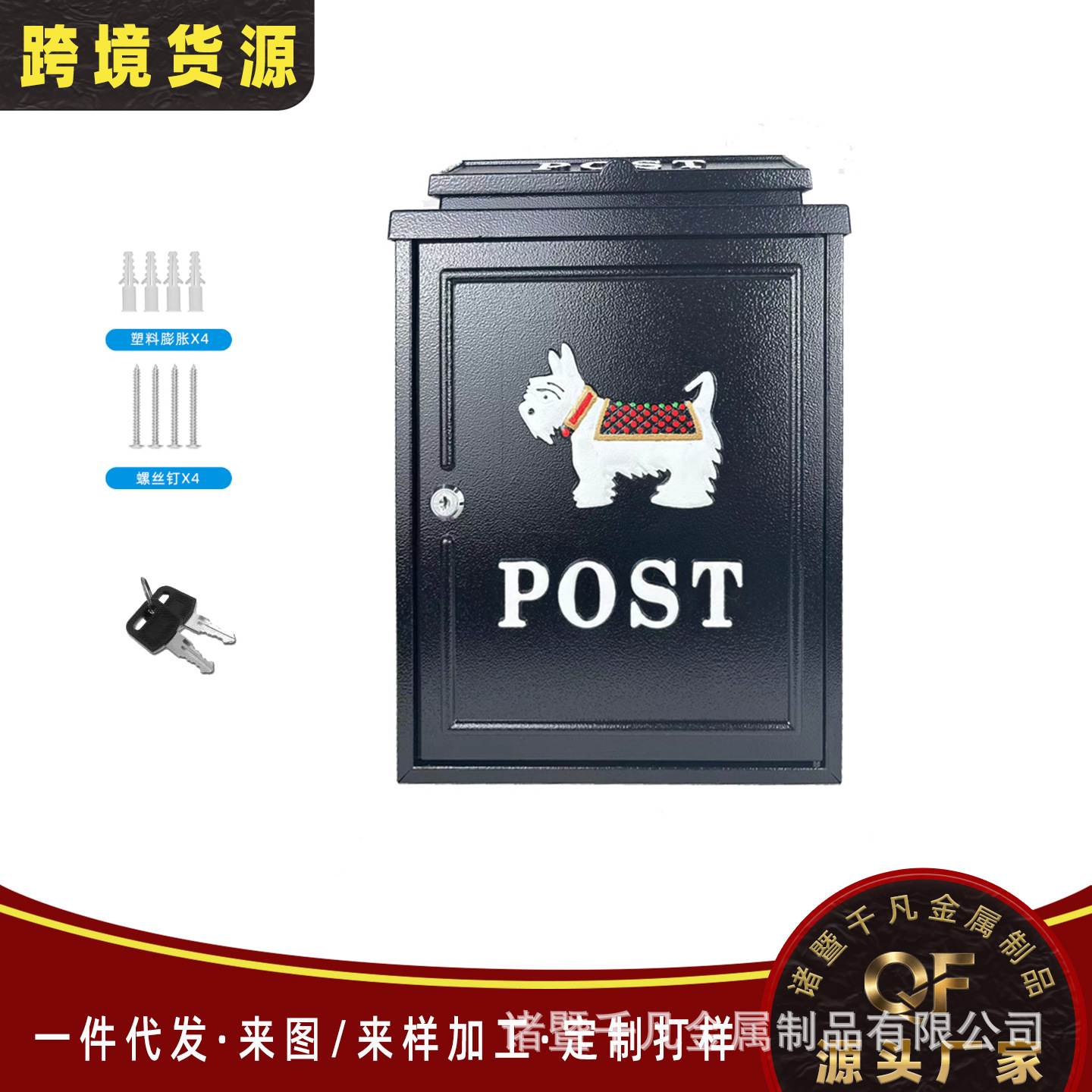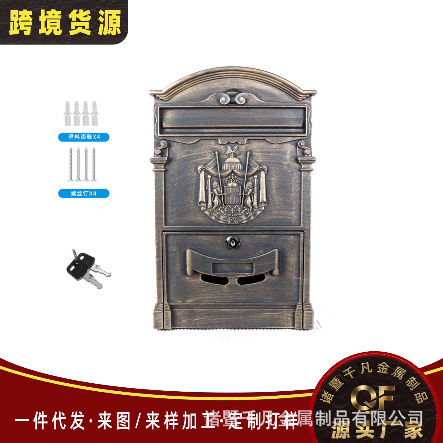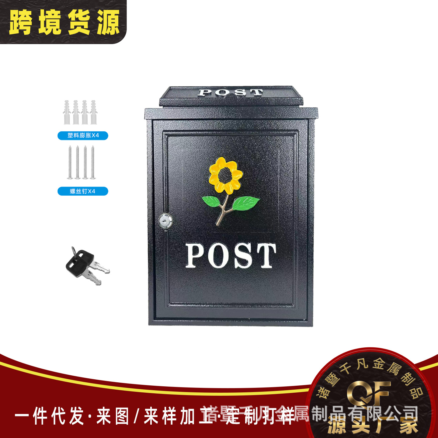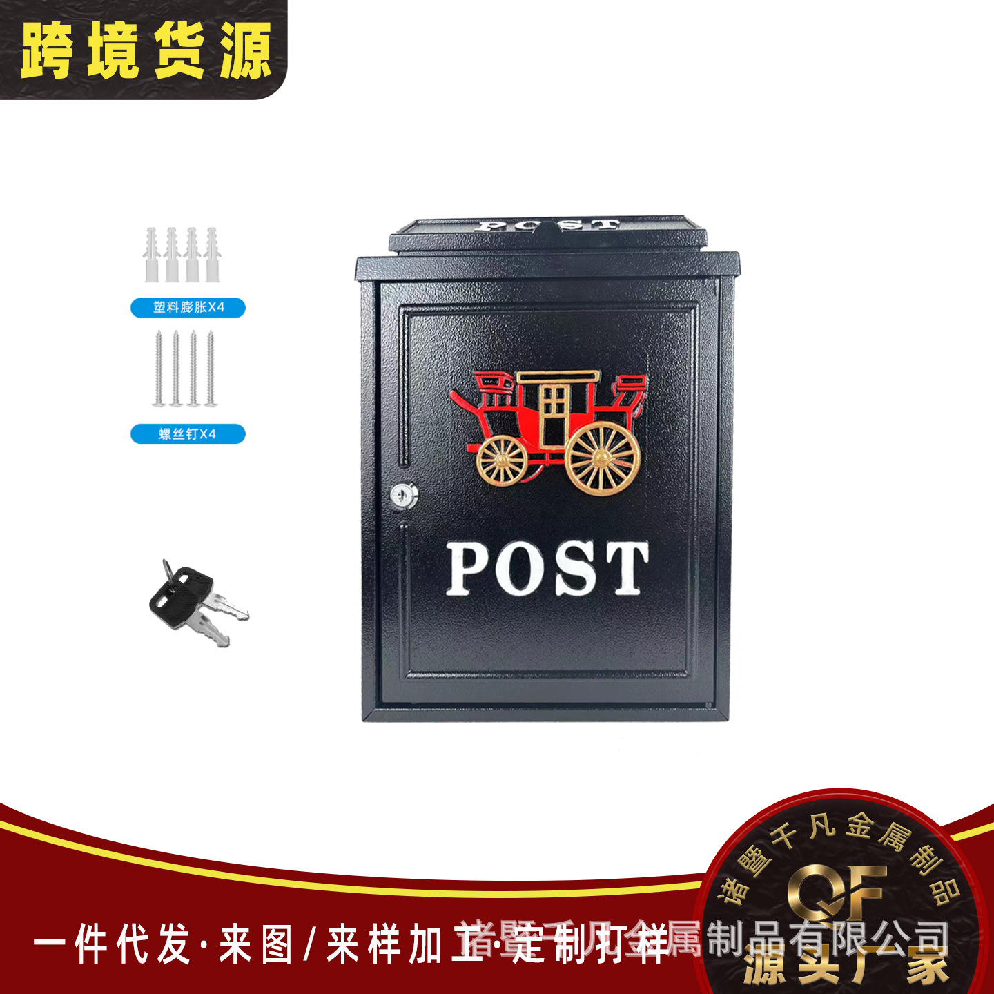 鸿陆跨境复古黑金色铁艺装饰邮箱创意庭院户外金属铁艺壁挂信箱