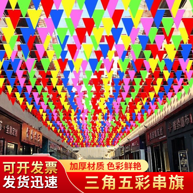 彩旗三角串旗婚庆公司开业庆典彩条旗幼儿园工地警戒小彩旗串旗杆
