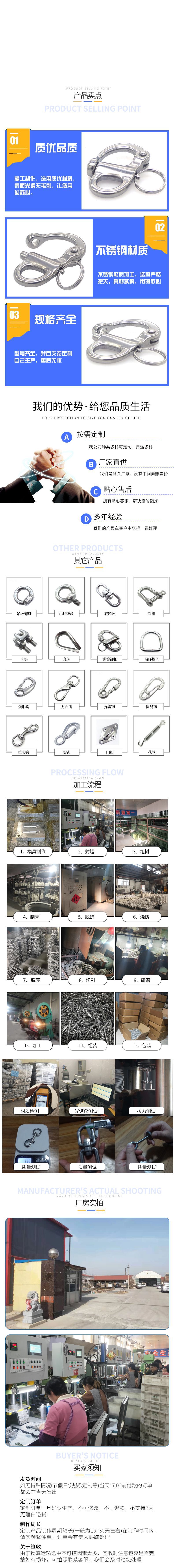 潜水双头钩 316不锈钢快挂B型钩 牵引绳钩宠物钩潜水弹簧钩